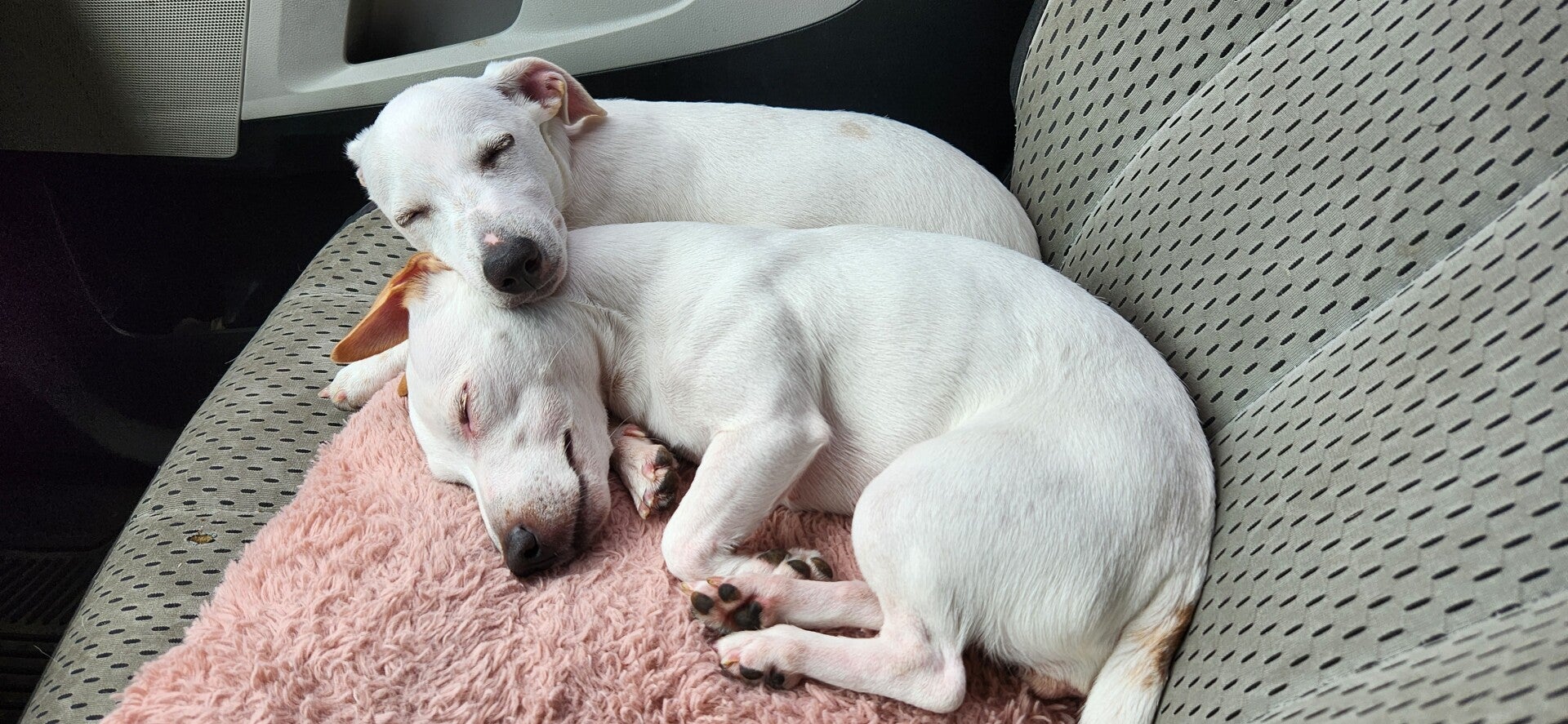 With a house full of other Jack Russells, keeping Mya calm is a full-time job. The barking, crying, and howling from the pack keep me constantly on my toes, trying to maintain a peaceful environment. Thankfully, we’ve found a routine that works. Mya gets a little supervised playtime to stretch her legs, but for rest, I keep her close. Most of the time, she’s snuggled up on the couch with me, entertained by her favorite toy and a goat’s milk cheese stick—lifesavers for keeping her still!